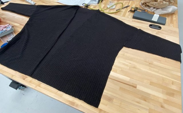 I used a regular sewing machine, a serger, and a cover stitch machine to sew the cardigan.