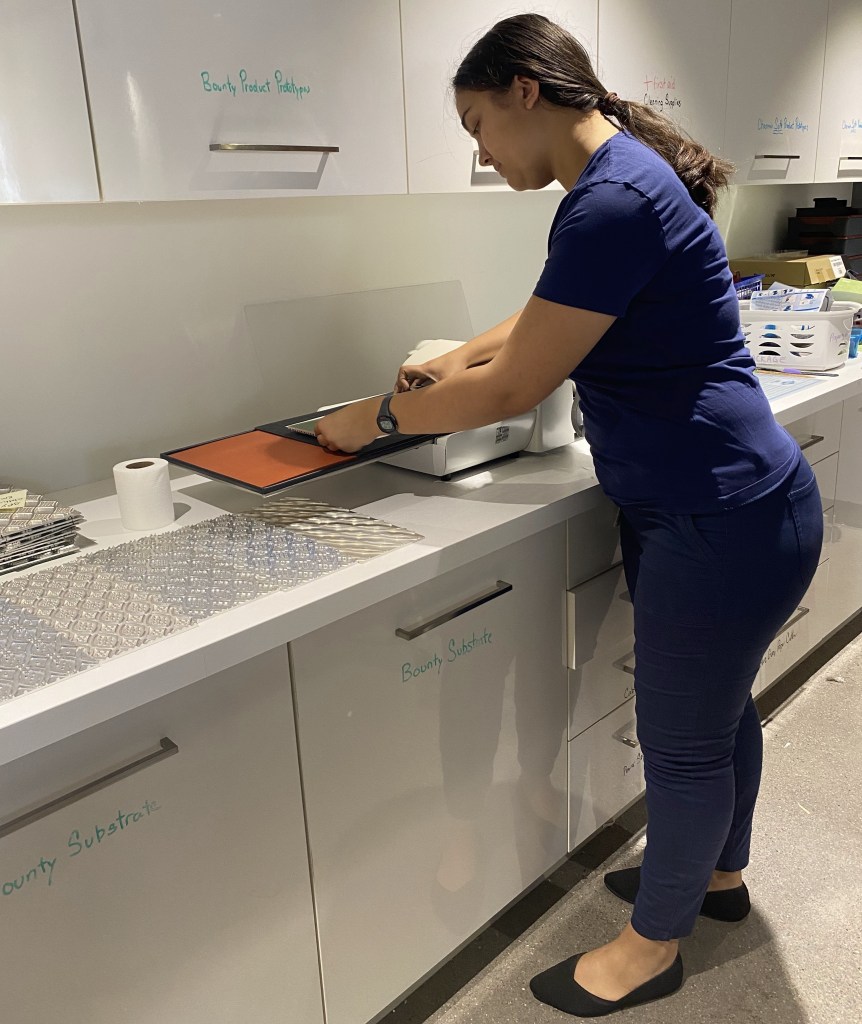 I designed the embossed pattern and sent specifications for depth and thickness to the vendor, who used a CNC to machine the metal plates.